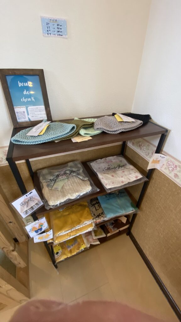 ハンドメイドされた可愛らしい子供用の帽子や服など、可愛らしい小物が置いてありました(*´꒳`*)