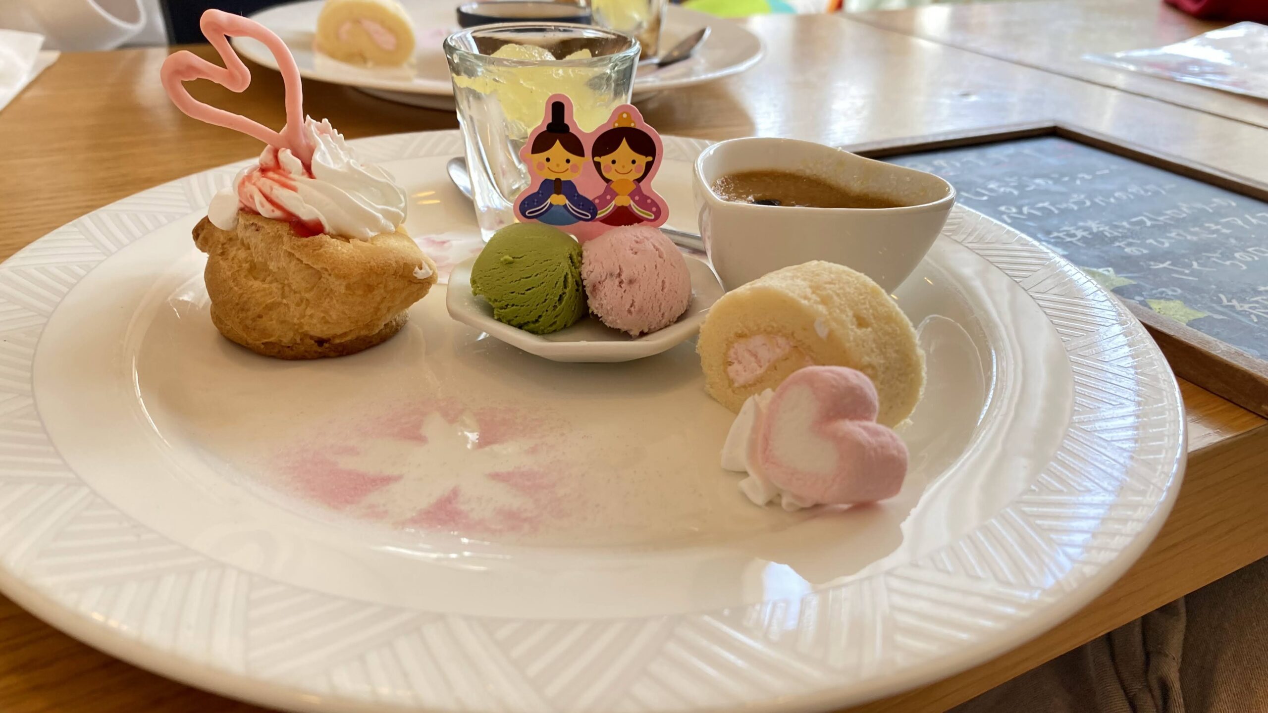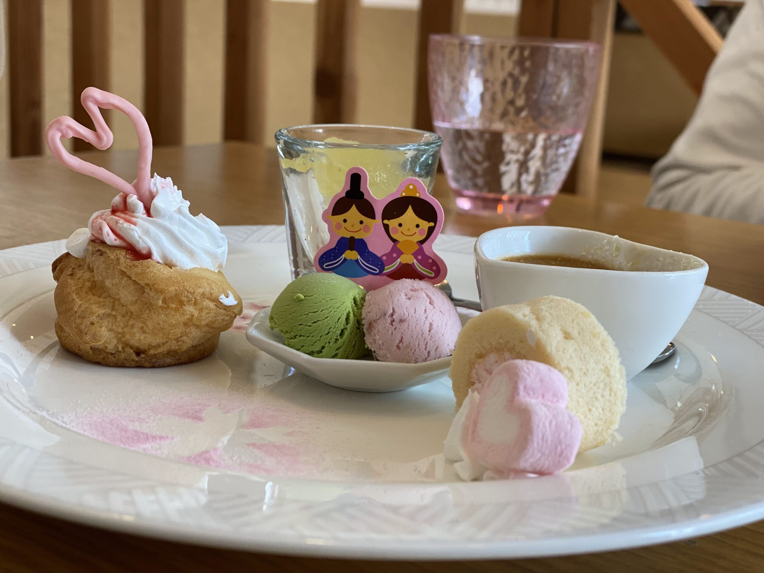 ちなみに今回来店したのが3月3日で、丁度ひな祭りのタイミングだったので、デザートが可愛らしいひな祭り仕様になってました。