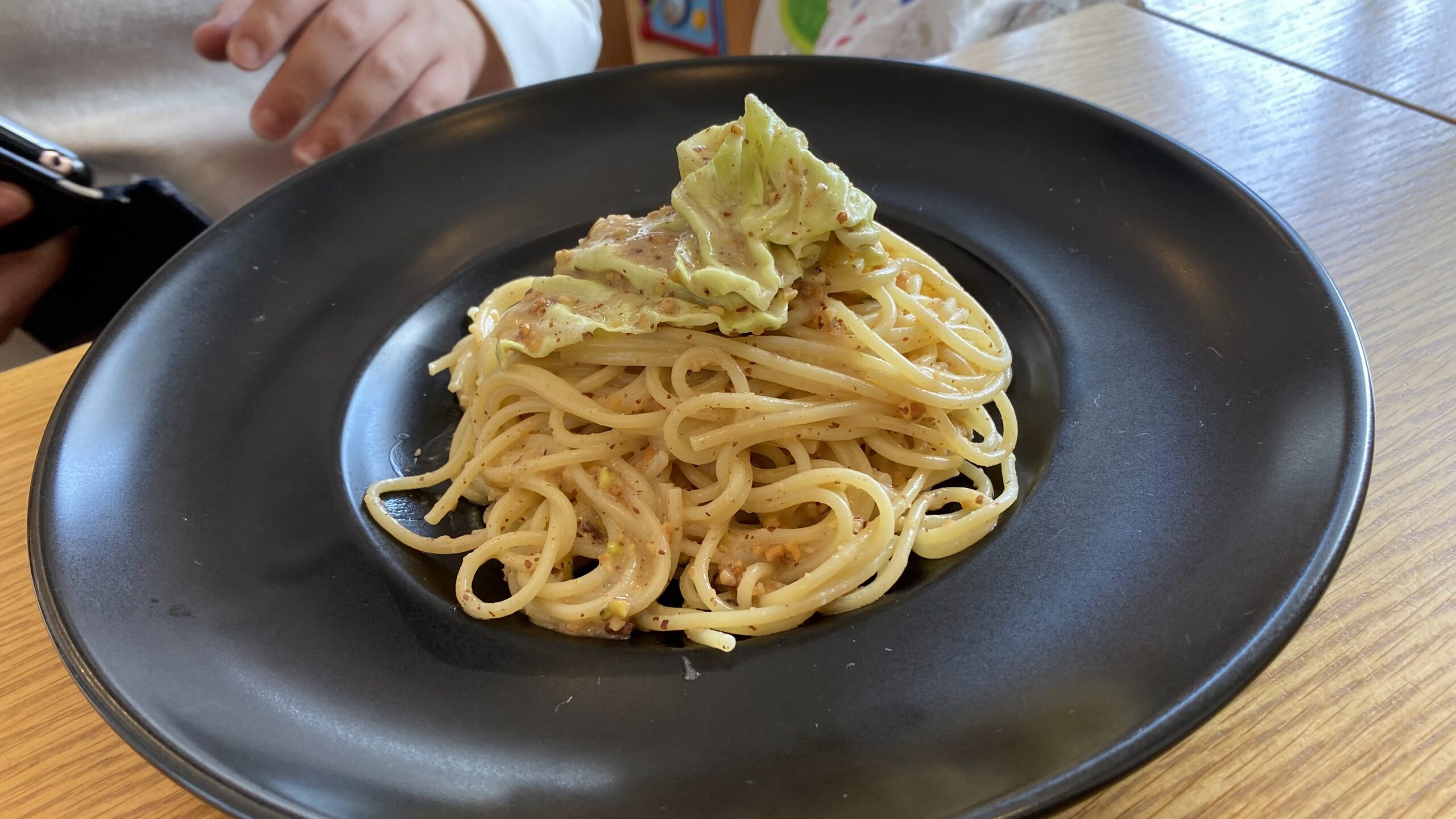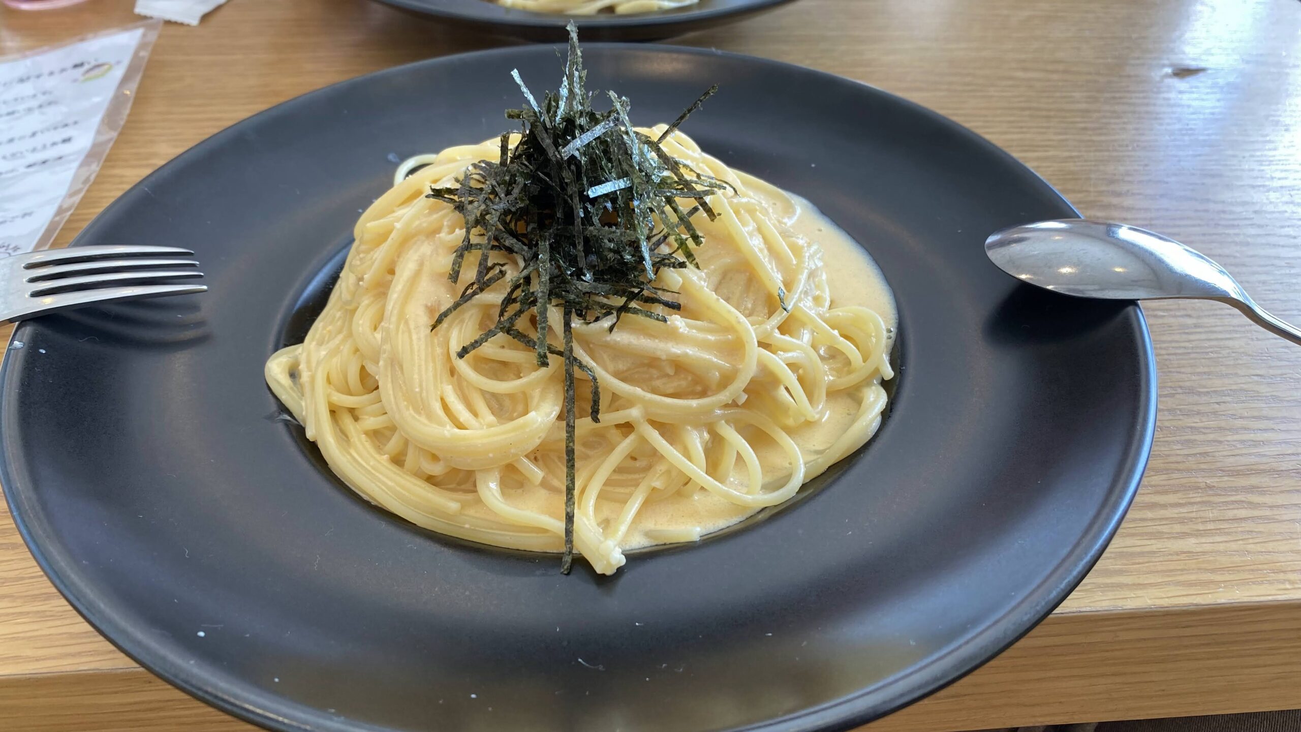 自分は明太子クリームスパゲティを選び、嫁はアーモンドとピスタチオのスパゲティを注文!